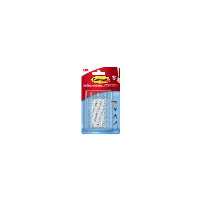 3M Command Clip décoratif, plastique, taille XS, transparentbon maintien, s'enlève sans traces, pratiquement invisible contenu: 20 clips / 24 languettes adhésives (17026CLRN/17026CLRFGN/7100352701)