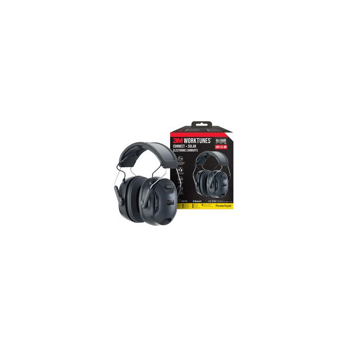 3M WorkTunes Capsule de protection auditive Connect & Solar sans fil, technologie bluetooth, réduit le niveau sonore de 33 dB max., se couple avec tout appareil bluetooth, qualité sonore premium, microphone intégré, autonomie de la batterie: 40 heures, arceau ventilé, écouteurs réglables (90570E-1 / 7100374079) article réservé aux acquéreurs commerciaux disposant de connaissances professionnelles sur son utilisation