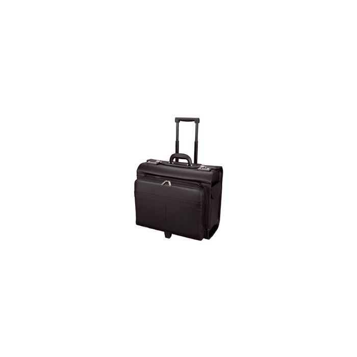 Alassio Valise pour pilotes "SAN REMO", en similicuir, noir avec compartiment pour laptop 38,10 (15") jusqu'à 43,18 cm (17"), manche télescopique escamotable, 2 serrures à chiffreen argent, 2 poches latérales dimensions externes: (L)455 x (P)265 x (H)390 mm (45030) dimensions extérieures: (L)455 x (P)265 x (H)390 mm, dimensions intérieures: (L)425 x (P)210 x (H)375 mm, dimensions intérieures notebook: (L)420 x (P)50 x (H)280 mm,hauteur du trolley: env. 1070 mm jüscha