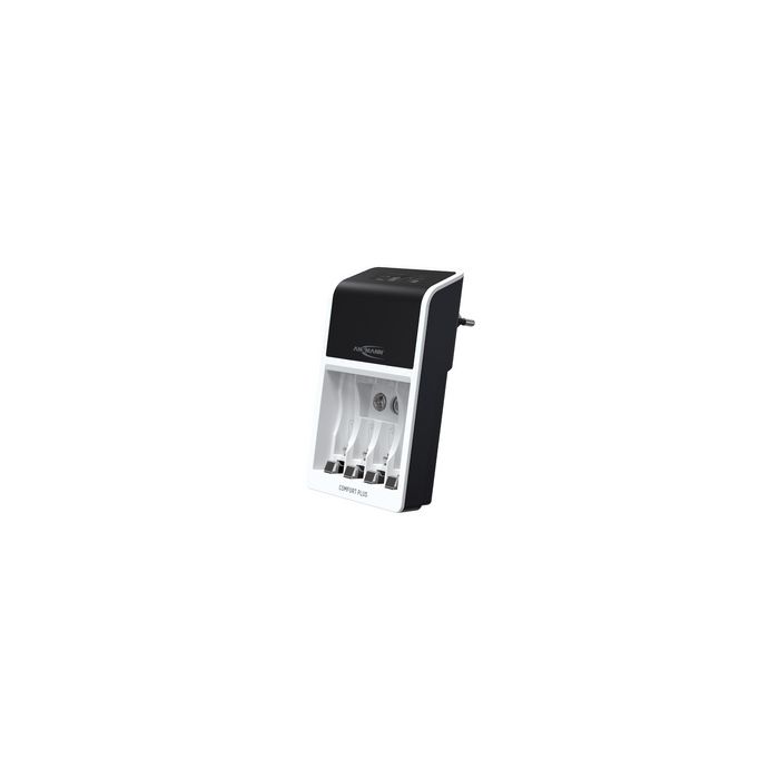 ANSMANN Chargeur rapide Comfort Plus, blanc/noir pour 1 à 4 piles rechargeables Micro AAA, Mignon AA ou 1 à 2Micro AAA, Mignon AA et une pile rechargeable 9V, test rapide de capacité, chargement préalable doux, analyse des piles, mode de chargement rapide, coupure IQ, (1001-0094) chargement Top-Off, charge d'entretien, fiche Euro,