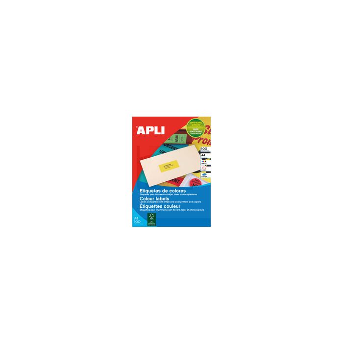 APLI Etiquette d'adresse, 210 x 297 mm, coins droits, jaune imprimantes jet d'encre/laser et photocopieuses, adhésif permanent contenu: 100 étiquettes sur 100 feuilles A4 (119041)