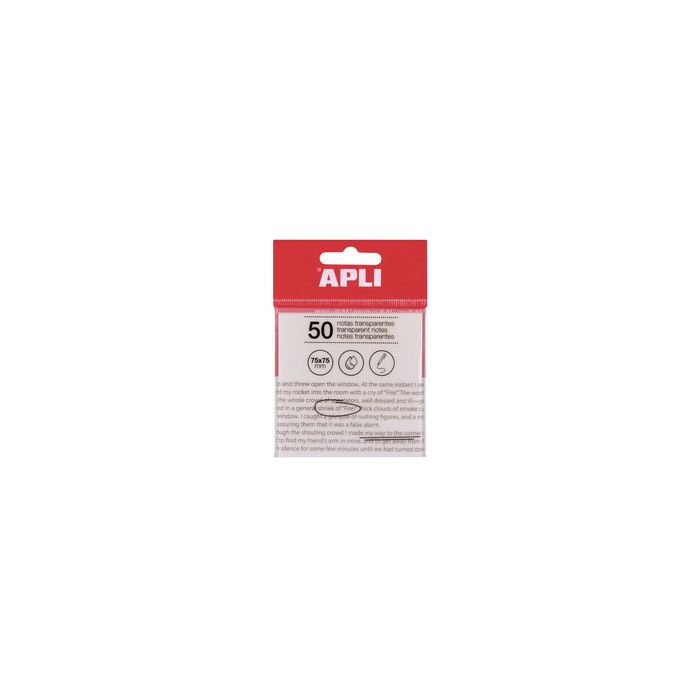 APLI Notes adhésives, 75 x 75 mm, incolore transparent 50 feuilles/bloc (19568)