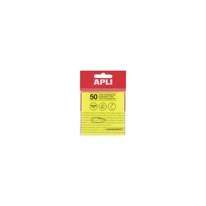 APLI Notes adhésives, 75 x 75 mm, jaune transparent 50 feuilles/bloc (19569)
