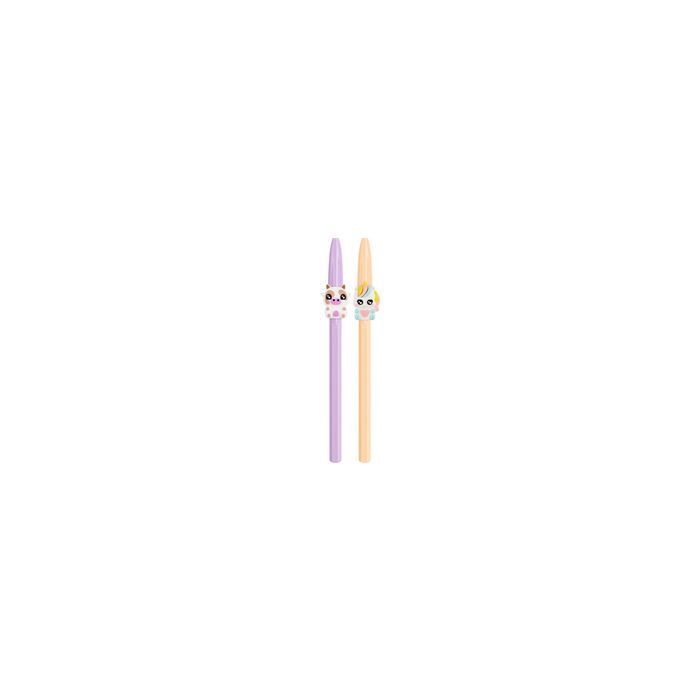 BIC Stylo à bille Cristal Pastel Figurines, lilas & rouge largeur de tracé: 0,32 mm, hexagonal, corps et capuchon en couleurs pastel, assorti dans les motifs vache (lilas) et licorne (rouge corail), couleur de tracé: bleu, blister contenu: 2 stylos (303750)