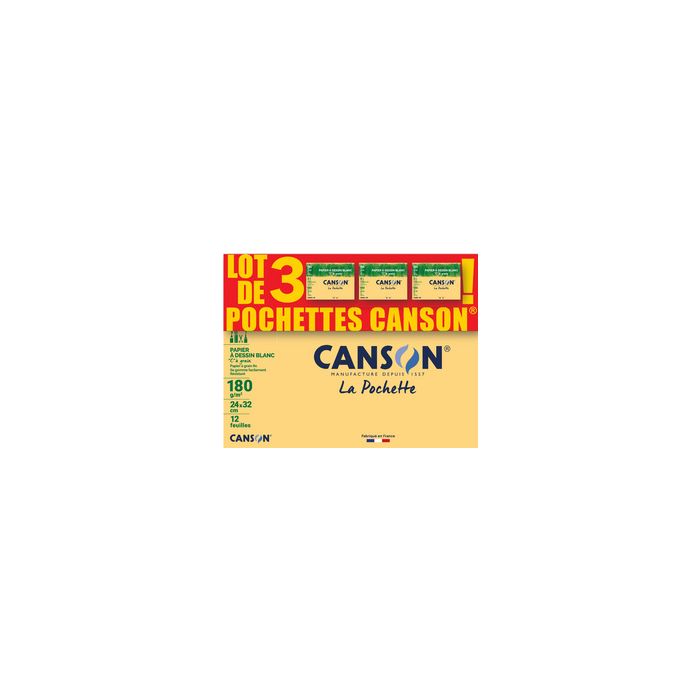 CANSON Papier à dessin "C" à grain, 240 x 320 mm, lot de 3 180 g/m3, pochette de 12 feuilles contenu: 3 pochettes (C400051380)