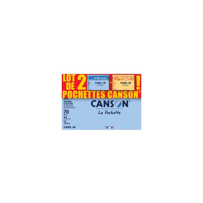 CANSON Papier calque & papier millimétré, lot de 2 contenu: - 1x papier calque, A4, 70 g/m2, 12 feuilles, en pochette - 1x papier millimétré, A4, 90 g/m2, bistre, 12 feuilles, enpochette (C400121939)