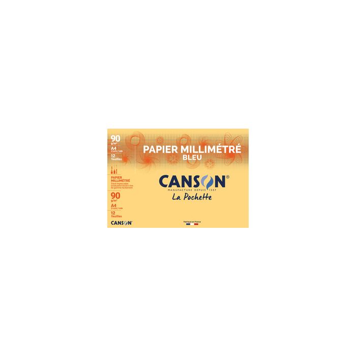 CANSON Papier millimétré, A4, 90 g/m2, couleur: bleu dans une pochette contenu: 12 feuilles (67116 / C200067116)