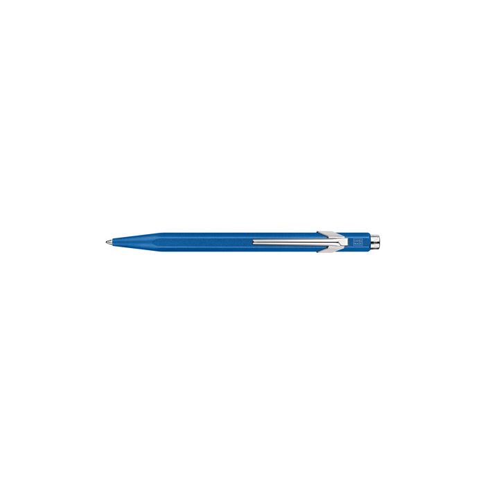 CARAN D'ACHE Stylo à bille 849 Colormat-X, bleu largeur de tracé: M, couleur de tracé: bleu, corps hexagonalen aluminium, clip flexible en métal, mécanisme rétractable,finition satinée premium, rechargeable avec la mine Goliath (849.135)
