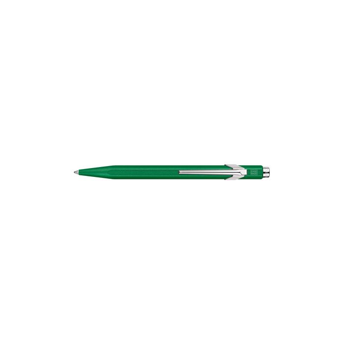 CARAN D'ACHE Stylo à bille 849 Colormat-X, vert largeur de tracé: M, couleur de tracé: bleu, corps hexagonalen aluminium, clip flexible en métal, mécanisme rétractable,finition satinée premium, rechargeable avec la mine Goliath (849.234)