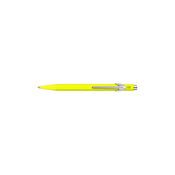 CARAN D'ACHE Stylo à bille 849 POPLINE FLUO, jaune largeur de tracé: M, couleur de tracé: bleu, corps hexagonalen aluminium, clip flexible en métal, bouton poussoir, rechargeable avec la mine Goliath (849.470)