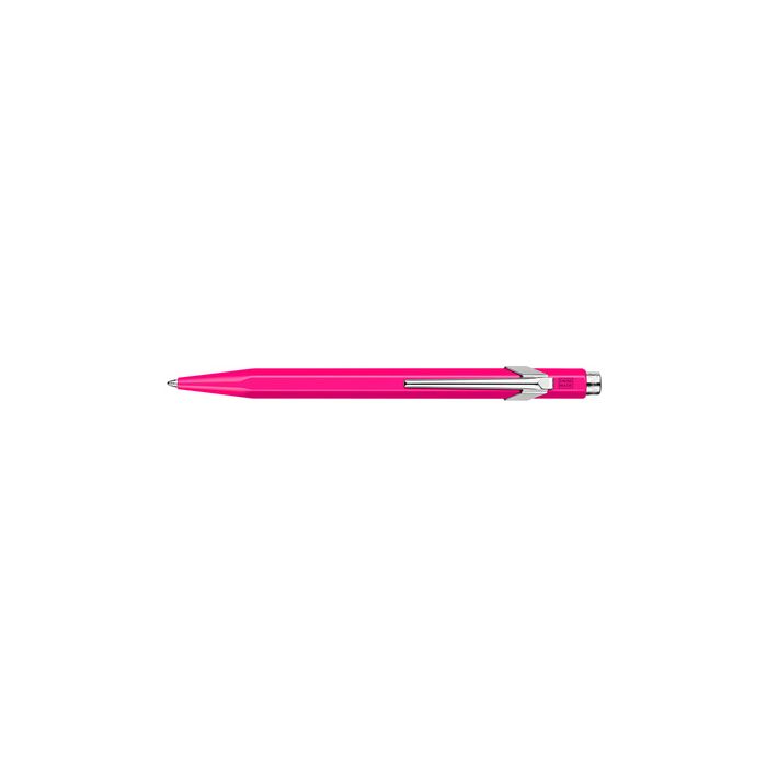 CARAN D'ACHE Stylo à bille 849 POPLINE FLUO, rose largeur de tracé: M, couleur de tracé: bleu, corps hexagonalen aluminium, clip flexible en métal, bouton poussoir, rechargeable avec la mine Goliath (849.090)