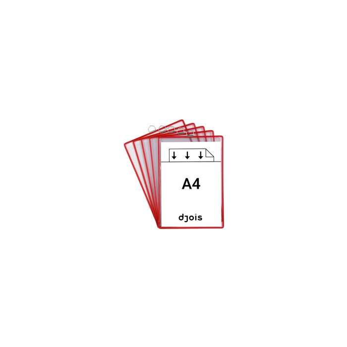 djois by tarifold Poche à anse, format A4, vertical, rouge en PVC souple, fixation par anse métallique, ouverture sur le haut en paquet de 5 poches (154503)