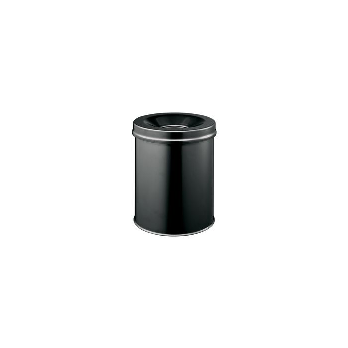 DURABLE Corbeille à papier SAFE, ronde, 15 litres, noir en acier, revêtement epoxy anti-rayure couvercle anti-flamme contre incendies hauteur: 357 mm, diamètre: 260 mm (3305-01)
