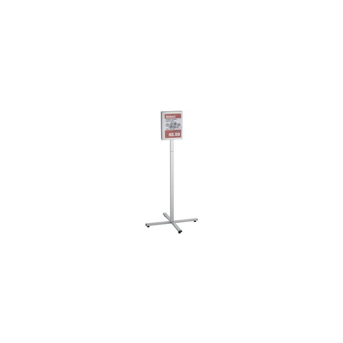 DURABLE Porte-infos INFO STAND OUTDOOR, A4, gris pour l'intérieur et l'extérieur, pochette étanche, fixation simple par aimants, utilisable en format portrait ou paysage, piétement pour présentation, en acier inoxydable, dimensions: (L)638 x (P)638 x (H)1.300 mm (format portrait) (502057)