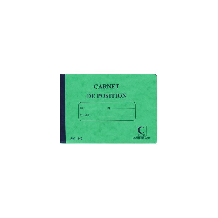 ELVE Carnet de position de compte, 114 x 156 mm 80 pages, intérieur papier registre supérieur 100 g/m2, imprimé en bleu, couverture carte lustrée, dos ruban pleine toile noire (1440)