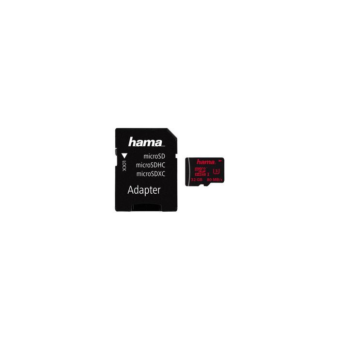 hama Carte mémoire Micro SecureDigital HC, Classe 3, 128 Go adaptateur inclus pour cartes SecureDigital, classe 3 UHS, inscriptible et effaçable aussi souvent que souhaité débit de transmission des données : 80 MB/sec. (00181000)