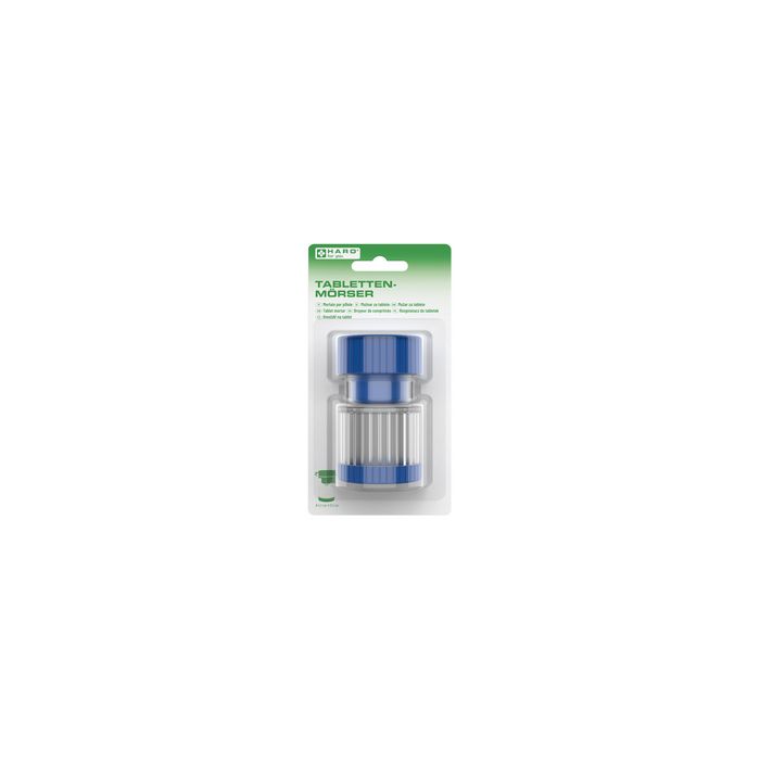 HARO Broyeur de comprimés, bleu/transparent rond, en plastique, compartiment de dépôt en deux parties, réduit les comprimés en poudre, facilite la prise, surtout en cas de troubles de la déglutition, avec bouchon à vis, surface cannelée, dimensions: (L)47 x (P)83 x (H)47 mm (10116)