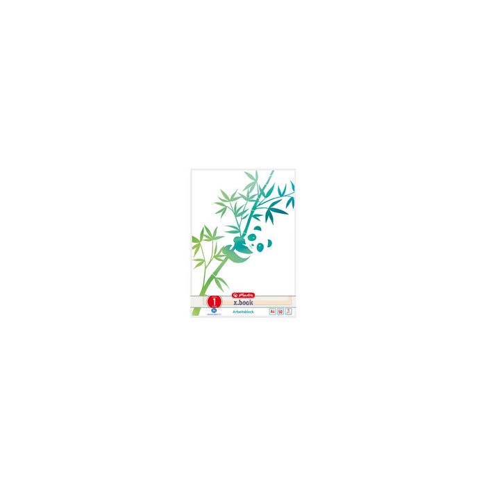herlitz Bloc de cours GREENline A4, 50 feuilles, réglure 1 papier 100% recyclé, 70 g/m2, avec marge, ligné, motif de la couverture: panda (nouveau: 400160921 / ancien: 50039890)