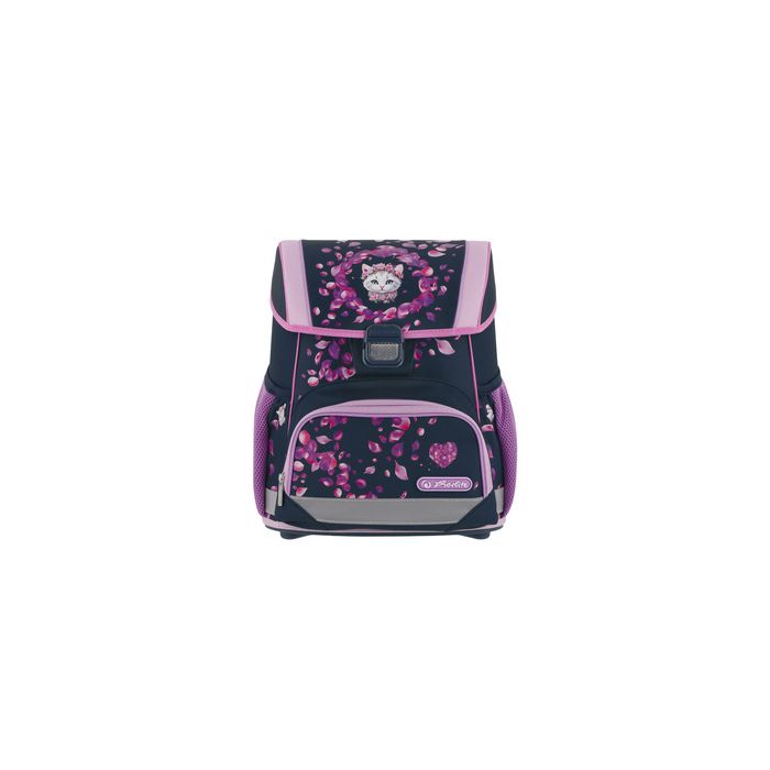 herlitz Cartable Loop Plus "Blossom Dance" polyester, dos rembourré ergonomique, plaque de fond solide,matériau en partie réfléchissant, bretelles réglables, sangle de poitrine réglables en hauteur, fermeture par clic,incl. étui, trousse et sac de sport (400205560) dimensions: (L)310 x (P)220 x (H)370 mm, capacité: 17 L, couleur: bleu foncé/rose, motif: chat