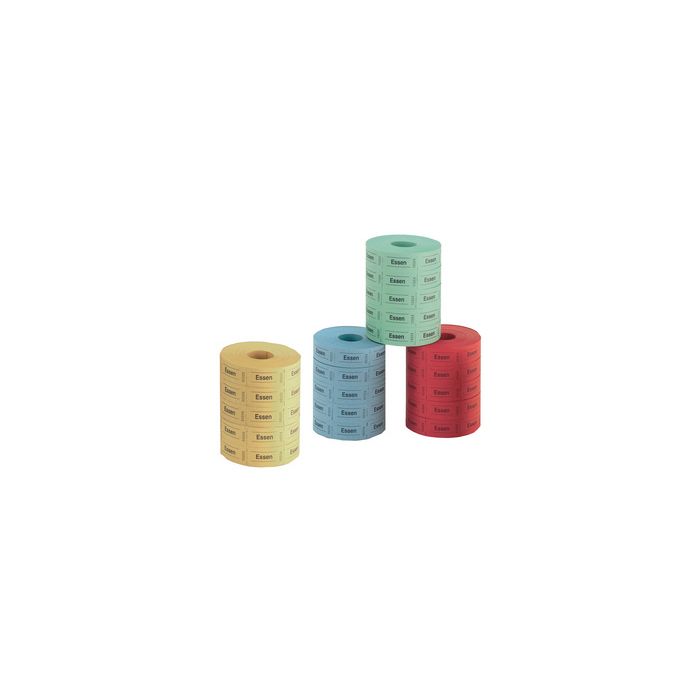 herlitz Essenmarken, 30 x 55 mm, 1.000 Abriss je Rolle --------------für den Markt: D / L / A / CH-----------------fortlaufend nummeriert, sortiert in den Farben gelb, rot, blau oder grün, kein spezieller Farbwunsch möglich! beinhaltet: 5 Rollen (neu: 300008430 / alt: 00791798-000)