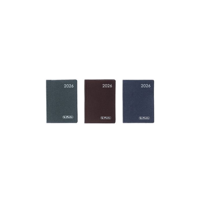 herlitz Taschenkalender Metallic 2026, A7, farbig sortiert -------------------- für den Markt: D ----------------------Blattgröße: 75 x 105 mm, Kalendarium: 1 Woche auf 2 Seiten, Innendruck: anthrazit/bordeaux, Folieneinband, Papier: 60 g/qm, 144 Seiten, sortiert in den Farben anthrazit, blau und bordeaux -> kein Farbwunsch möglich! (neu: 300014200 / alt: 50047567)
