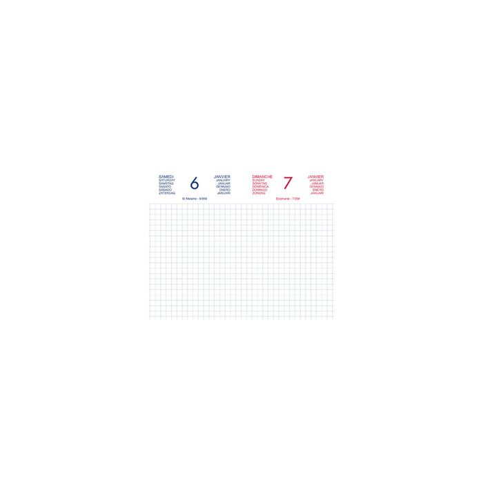 - Calendrier: 1 jour par page, 6 langues