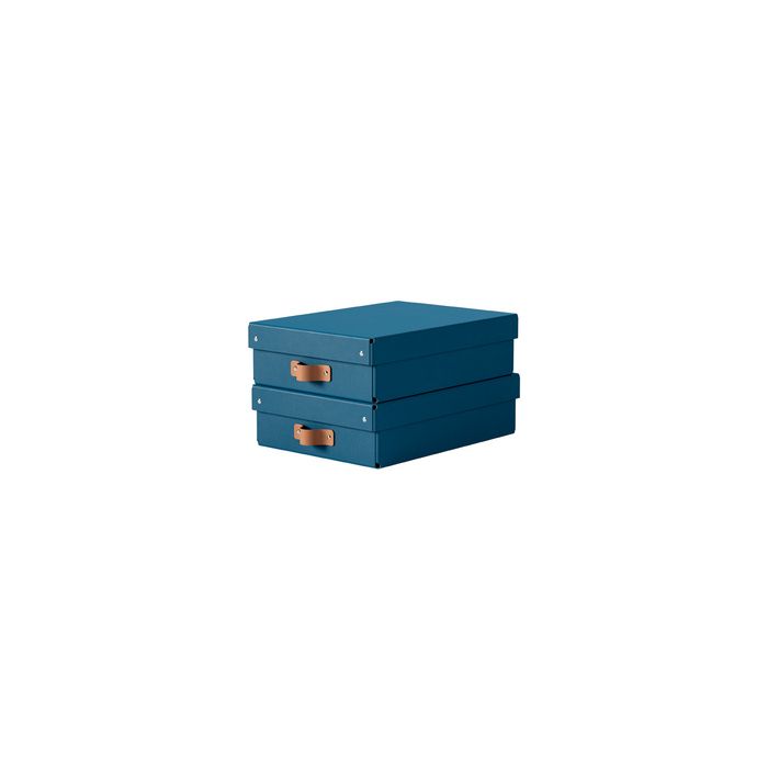 LEITZ Boîte de rangement Puro, carton, 8 L, set de 2, bleu avec couvercle, en carton 100% recyclé, capacité de charge: 4 kg, avec poignée en cuir, livré à plat, dimensions: (L)270 x (P)370 x (H)100 mm contenu: 2 pièces (61480068)