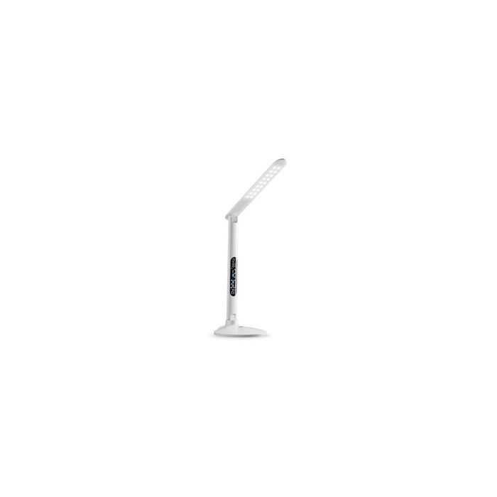 magnetoplan Lampe de bureau à LED Strato, avec socle, blanc puissance: 10 watts, consommation d'énergie pondérée: 10 kWh/1000 h, flux lumineux: 554 lumens, température de couleur: 2.800-5.500 K, indice minimal de rendu de couleur: 80 Ra, durée de vie: 35000 h, (4424700) contient une source lumineuse de classe d'efficacité éner- gétique F, affichage numérique de la date, de l'heure et de la tempéra-ture ambiante, pliable, charnières en acier inoxydable, avec socle, 5 niveaux d'éclairage, couvercle d'éclairage dépoli, réglage de l'angle: 90 degrés vers le bas / 180 degrés vers le haut, fiche euro