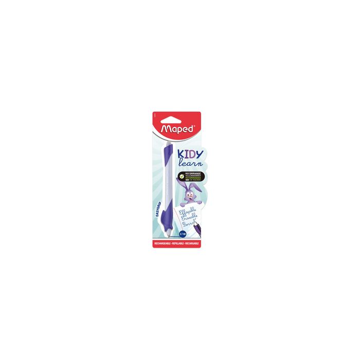 Maped Stylo roller KIDY learn Lapin, blister stylo d'apprentissage à encre effaçable, largeur de tracé: 0,7 mm, avec aide à l'écriture souple en forme de lapin, longueur: 145 mm, couleur: lilas / violet, sous blister (229600)