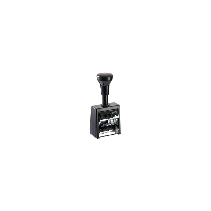 REINER Tampon numéroteur B6K, hauteur de caractère: 5,5 mm boîtier noir, en plastique, molette en métal spécial moulé, pour 6 chiffre, police: Block, permutation 0x, 1-6x, 12x et 20x, changement automatique des empreintes de chiffres: 5 positions à partir de la droite, SANS 0 devant (B6K)