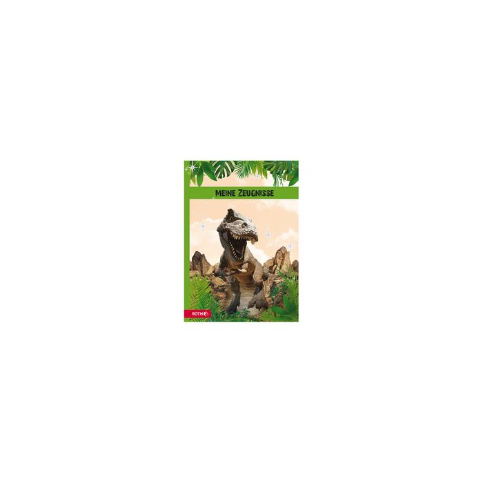 ROTH Zeugnismappe "Tyrannosaurus", mit Design und Effekt Format: DIN A4, inkl. 10 PP-Hüllen, mit Glittereffetk, wattiertes Cover, Aufdruck: Meine Zeugnisse (89324)